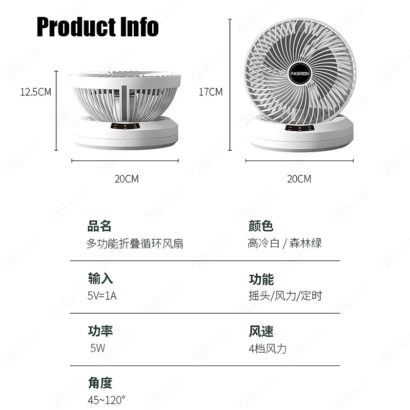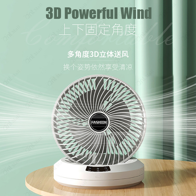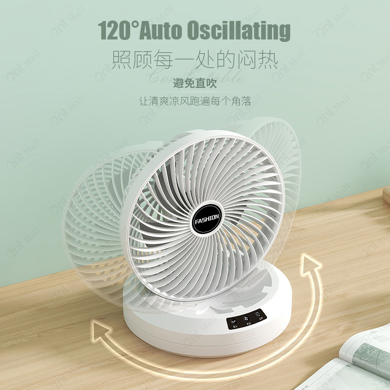 ?SG? Desk Auto Oscillating Fan Table Foldable Mini Wall-Mount Fan 4800mAh USB Rechargeable Timing Fan Auto Rotation