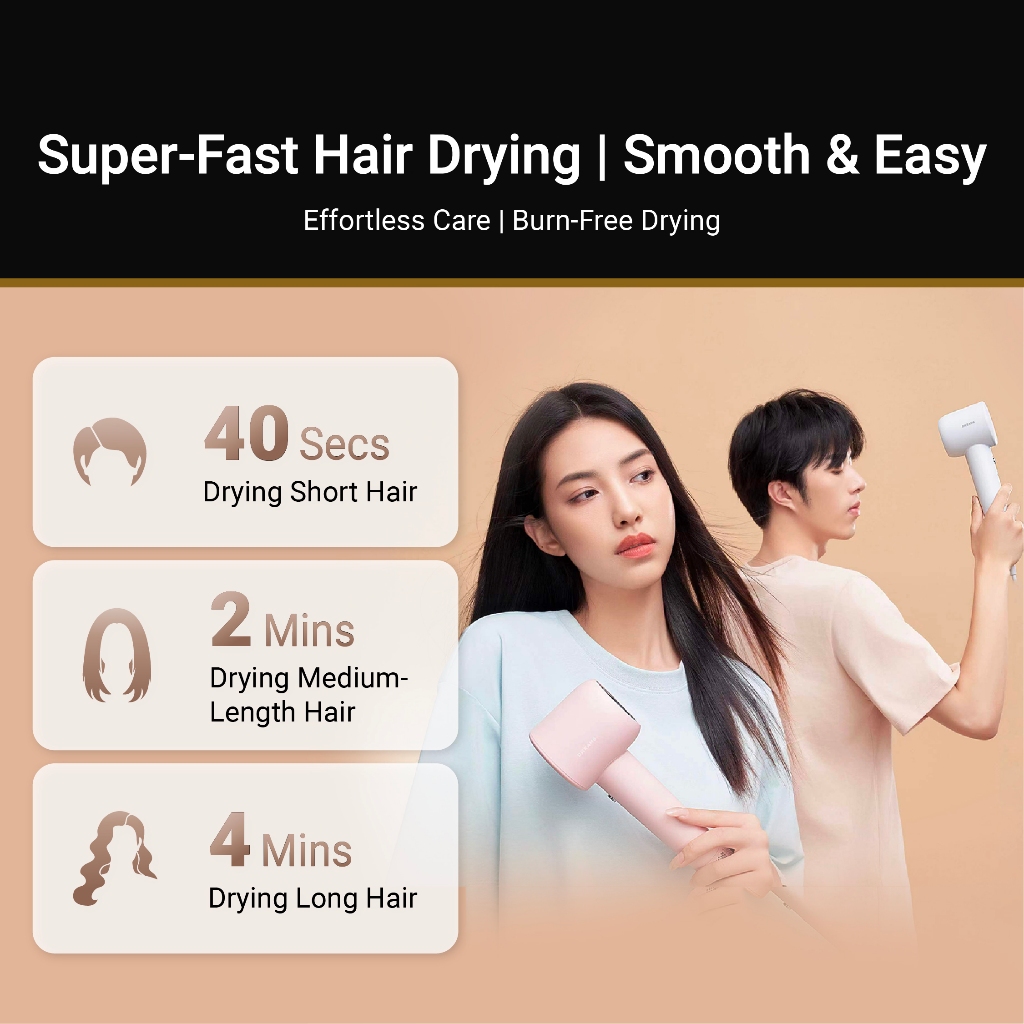 【2 Years Warranty】 Dreame Hair Gleam Hair Dryer | High Speed 2 Mins Fast Drying | 330g Lightweight