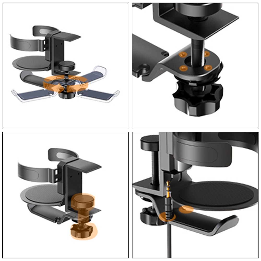 360 Aluminum Alloy Metal Gaming Display Under Desk Table Drink Cup Headphone Headphone Hook Bracket Installation