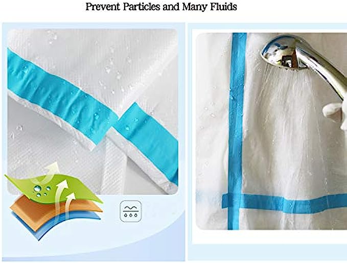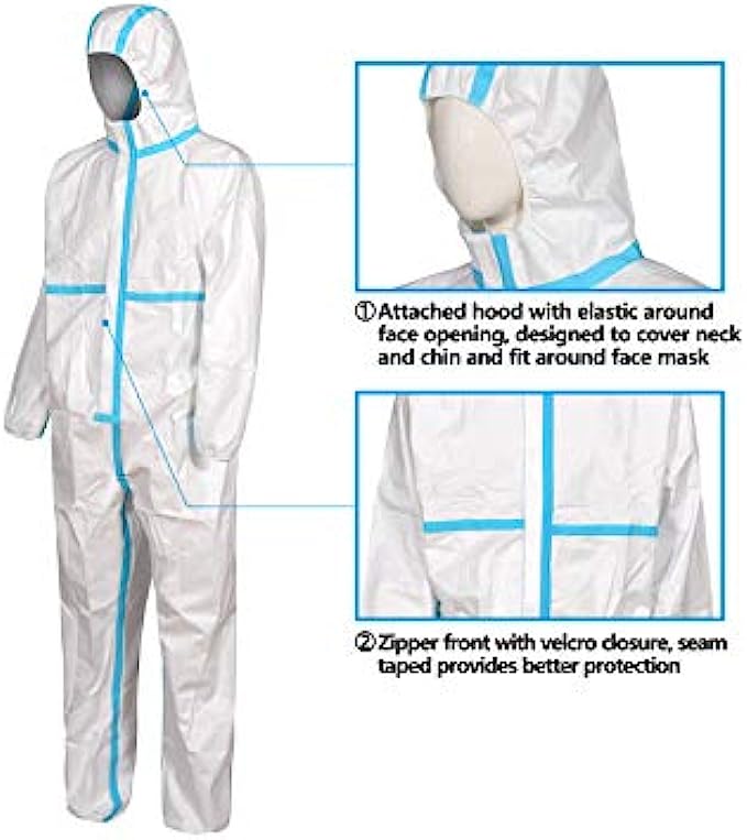 • Zipper front with protective storm flap, attached hood, elastic wrists and ankles help prevent splashes from reaching clothing or skin. Hood with elastic around face opening, designed to cover neck and chin and fit around face mask.