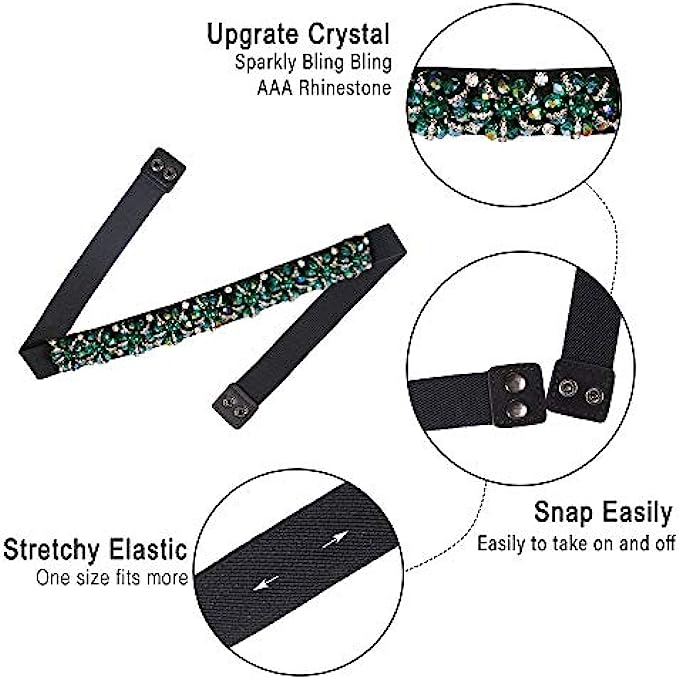 Dorchid Women Rhinstone Belt Skinny Beaded Crystal Waistband Elastic Belts 7 Colors