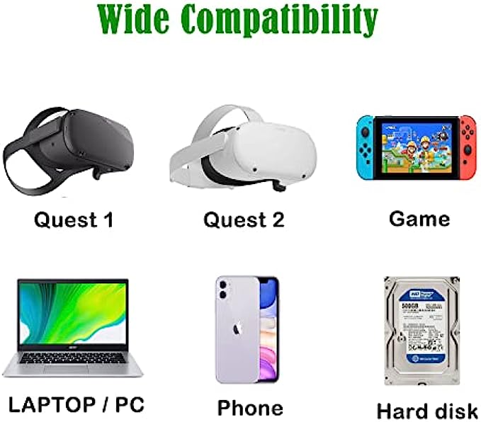 • Compatible For Oculus Quest 1/2 - This Link Cable as a VR headset link cable perfectly connects the Quest / Quest 2 to the gaming PC, allows you to play Steam VR games and all Oculus Rift apps, providing the best gaming experience.