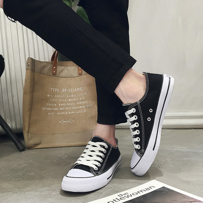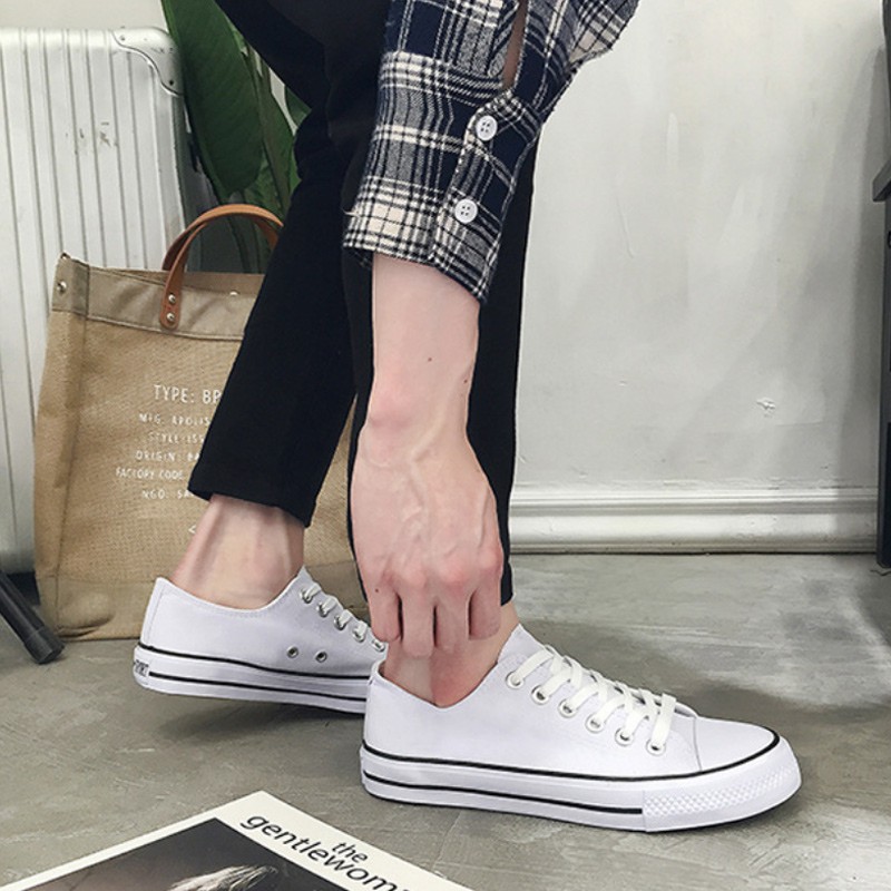 [BY SCHUMART] Unisex White/Black Canvas Sneakers School Shoes Casual Outfit