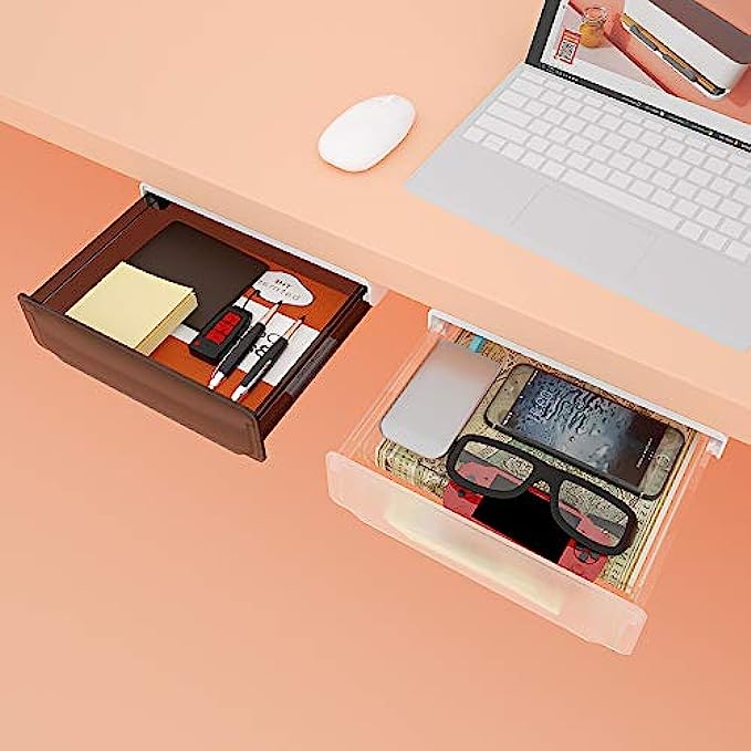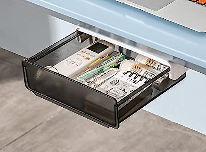 • ✅ ORGANIZE THE DESKTOP : This hidden drawer storage will hold quite a lot of office supplies such as pencil, airpods, charger, notebook, sticky note, tissues and etc. Organize your desktop especially suitable for standing desk without drawer
