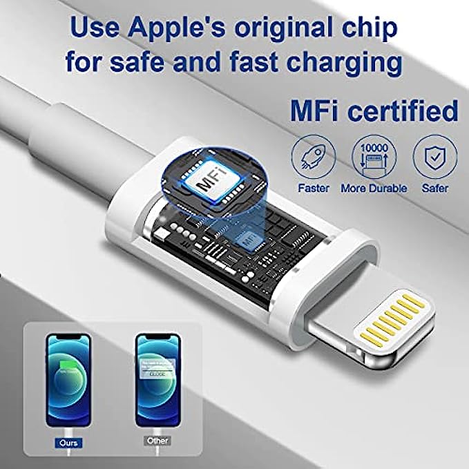 【Premium& Durable】- 6 Ft iPhone charging cable to meet all your charging need, lasts 12× longer than other cables and tested to withstand over 5000 bend in strict laboratory tests. The cable has extremely high resistant to splitting and breakage.