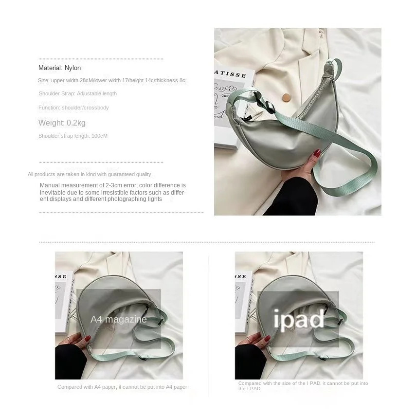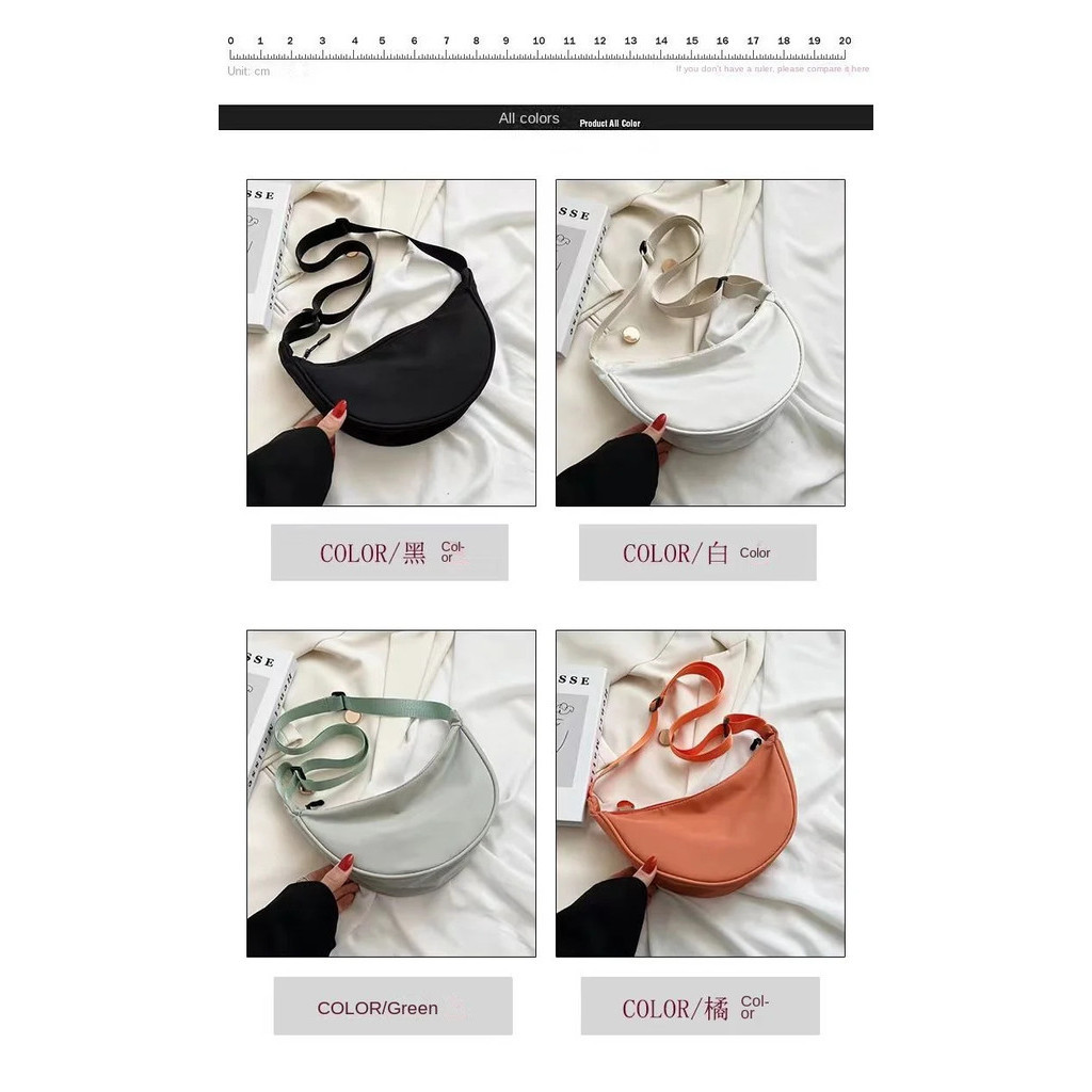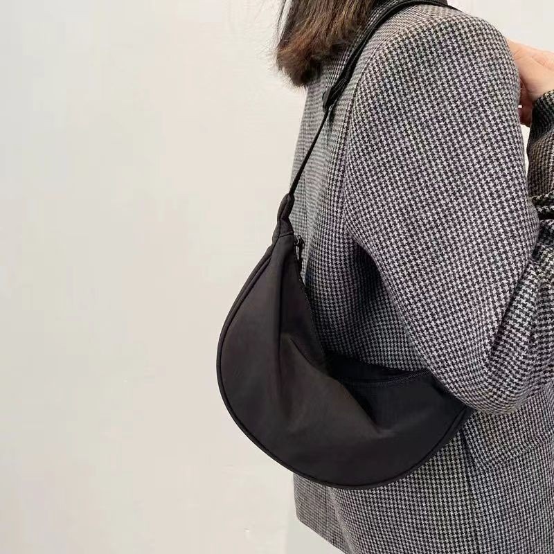 PHO Women Cute Chest Bag Large Capacity Solid Color Travel Crossbody Bag Half Moon Nylon Daily Casual Shoulder Bag FH022